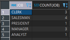 SELECT JOB, COUNT(JOB) FROM EMP GROUP BY JOB;