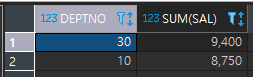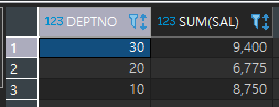 SELECT DEPTNO, SUM(SAL) FROM EMP GROUP BY DEPTNO;