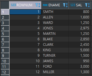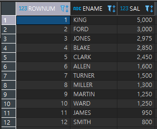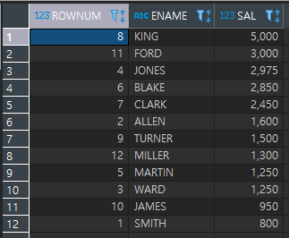 SELECT ROWNUM, ENAME, SAL