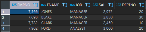 WHERE SAL > ALL(SELECT SAL FROM EMP WHERE JOB='MANAGER');