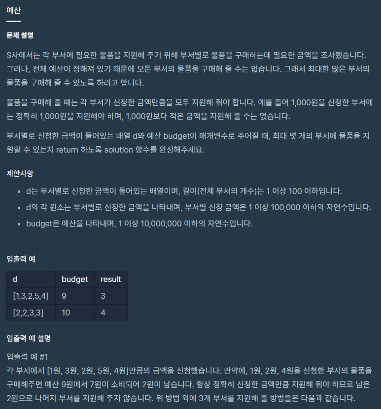 코딩테스트 연습 - 예산