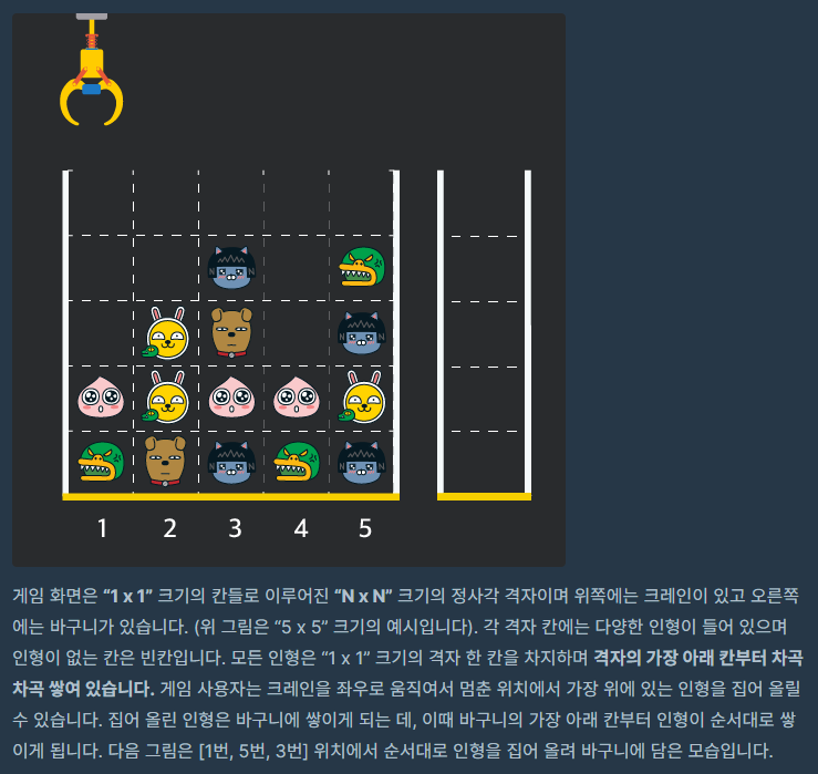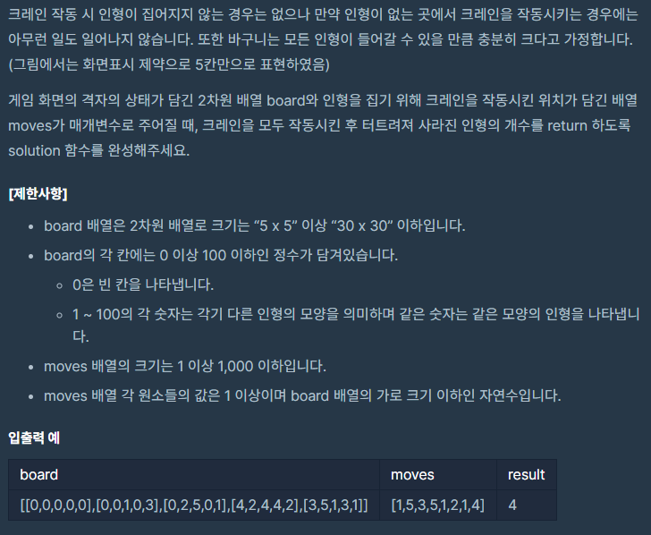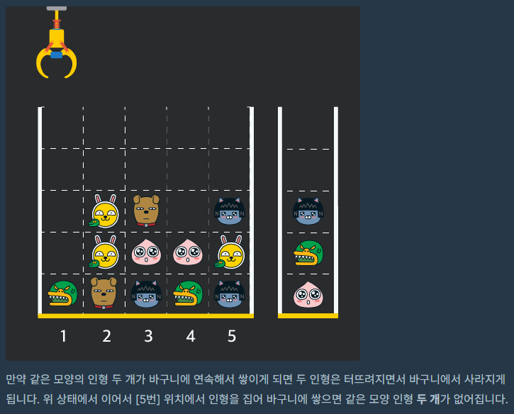 코딩테스트 연습 - 크레인 인형뽑기 게임
